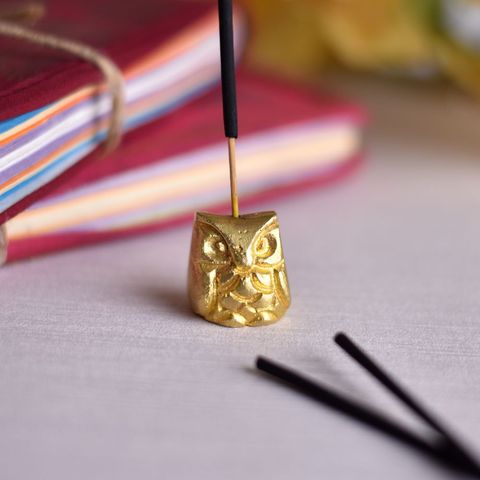 핫 세일 수제 장식 황금 황동 올빼미 향 홀더 Agarbatti 스탠드 홈 장식 디 왈리 장식 VIH-52